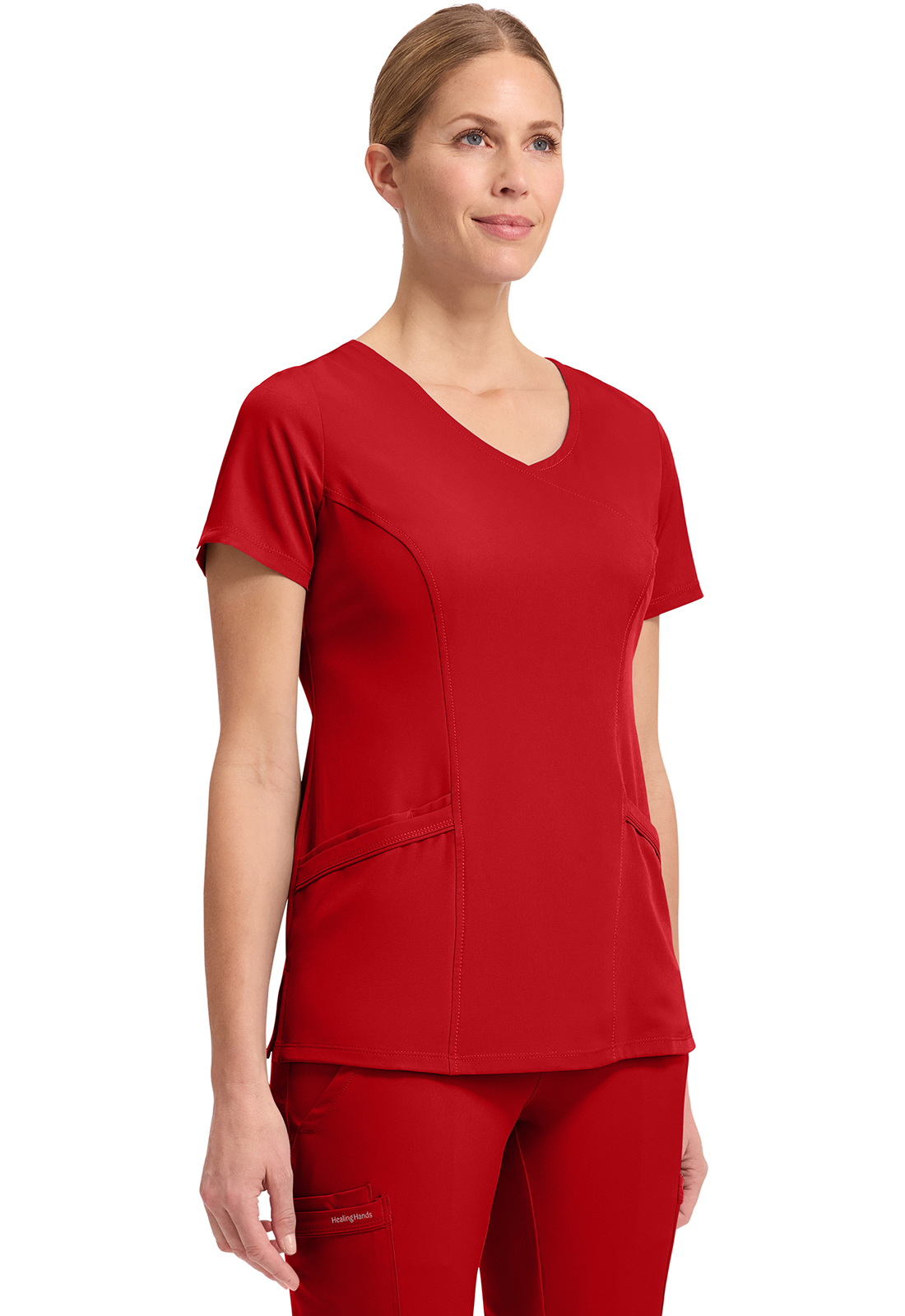 HH Works – Conjunto médico con blusa mock-wrap y pantalón recto Rebecca